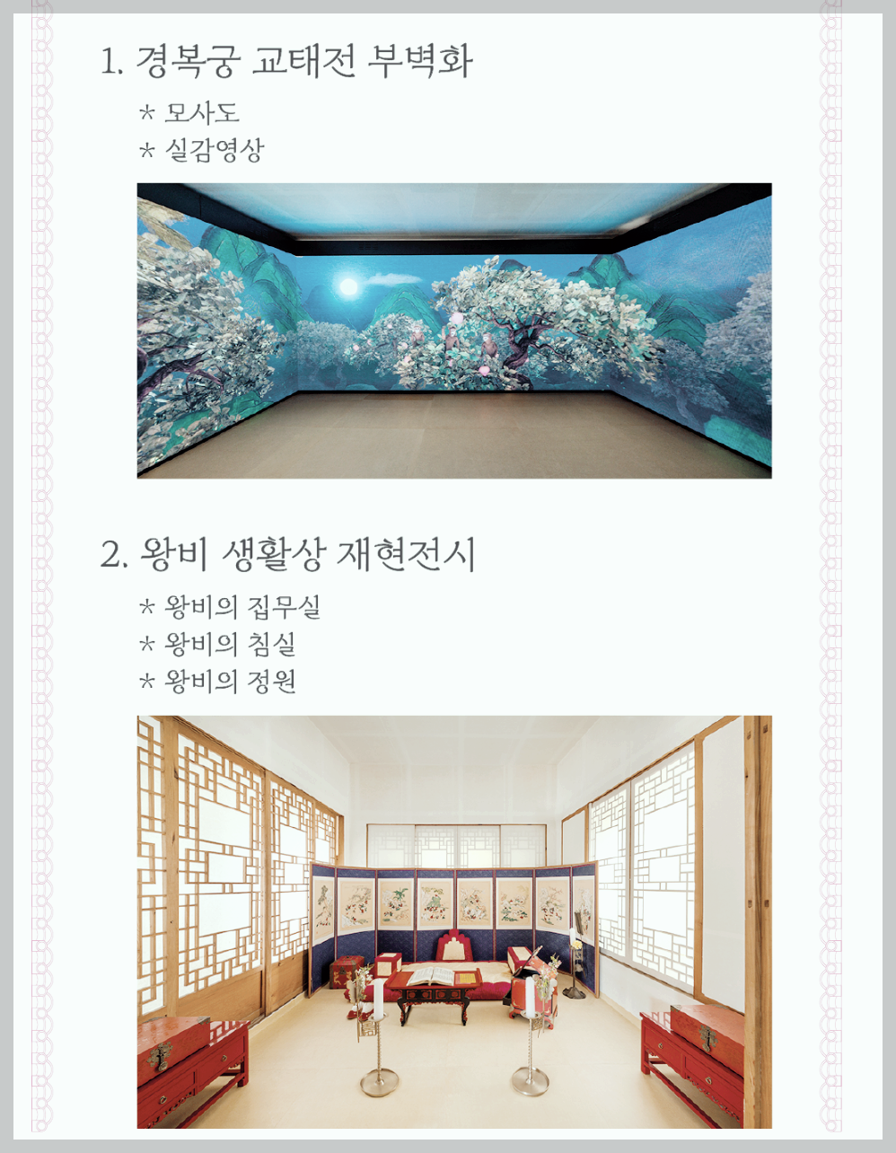 - 온돌방: 왕비의 생활상을 엿볼 수 있는 재현 유물 전시