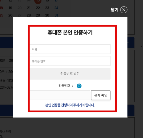 관람예약 시간을 선택하고 휴대폰 본인 인증 후 예약이 완료됩니다.