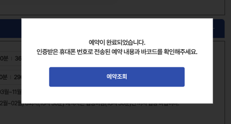 예약이 완료되면 아래와 같이 관람 예약조회에서 바코드가 조회됩니다.